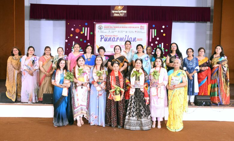 जालंधर, 26 अप्रैल (धर्मेंद्र सौंधी) : हंस राज महिला महाविद्यालय, जालंधर में प्राचार्या प्रो. डॉ. (श्रीमती) अजय सरीन के दिशा-निर्देशन अधीन पुनर्मिलन एलुमनाई मीट-2025 का आयोजन किया गया। इस अवसर पर मुख्यातिथि के रूप में डॉ. सोमा मरवाहा, डीन अकादमिक व विभागाध्यक्ष जूलॉजी विभाग उपस्थित रहे। इस अवसर पर एलुमनाई वेलफेयर एसोसिएशन प्रेसीडेंट श्रीमती किरणप्रीत कौर धामी व वाईस प्रेजीडेंट श्रीमती सरोजनी गौतम शारदा, सुश्री रमनप्रीत ने भी उपस्थित रह समागम को शोभायमान किया।