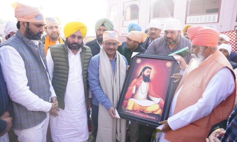 केजरीवाल, भगवंत मान, हरपाल सिंह चीमा समेत अन्य आप नेताओं का डेरा ट्रस्ट ने किया भव्य स्वागत,सभी को सिरोपा देकर किया सम्मानित
