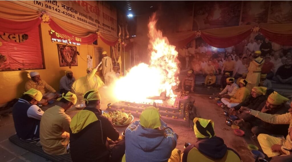 जालंधर 23 नवंबर (हरजिंदर सिंह): मां बगलामुखी धाम गुलमोहर सिटी नजदीक लम्मां पिंड चौक में मां बगलामुखी जी के निमित्त श्रृंखलाबद्ध दिव्य हवन यज्ञ का आयोजन मंदिर परिसर में किया गया। मां बगलामुखी धाम के संचालक एवं संस्थापक नवजीत भारद्वाज की देख रेख में किया गया।सर्व प्रथम मुख्य यजमान अभिषेक भनोट से वैदिक रीति अनुसार गौरी गणेश, नवग्रह, पंचोपचार, षोडशोपचार, कलश, पूजन उपरांत ब्राह्मणों ने आए हुए सभी भक्तों से हवन-यज्ञ में आहुतियां डलवाई । मां बगलामुखी जी के निमित्त भी माला मंत्र जाप एवं हवन यज्ञ में विशेष रूप आहुतियां डाली गई। हवन-यज्ञ की पूर्णाहुति के उपरांत नवजीत भारद्वाज ने आए हुए भक्तों से अपनी बात कहते हुए कहा कि अध्यात्म के बिना मानव जीवन अधूरा हैं। अध्यात्म एक जीवन निर्माण का मूल सूत्र हैं,दिशा हैं पथ हैं। मानव मात्र के लिए अध्यात्म महत्वपूर्ण हैं। जीवन की शुरुआत संस्कारों से होती हैं और संस्कार हमें अध्यात्म से मिलते हैं। हमारे पूर्वजों ने जैसा हमें संस्कार व शिक्षा दी वैसा हम जीने का प्रयास करते हैं। अपने जीवन में कर्म करके शांति से जीवन यापन करना चाहते हैं।