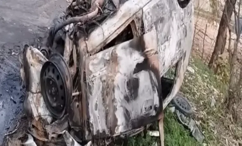 अनियंत्रण कार पेड़ से टकराई, कार में लगी आग