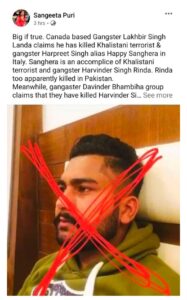 कनाडा में बैठे लखबीर सिंह उर्फ लंडा ही हैप्पी संघेड़ा के कत्ल के पीछे है। लंडा ने दावा किया है कि संघेड़ा का कत्ल उसने करवाया है। वह आतंकी रिंदा के करीब था, लेकिन उसके उलटा चलना शुरू हो गया था। जिससे उसे व उसके साथियों को नुकसान हो गया था।