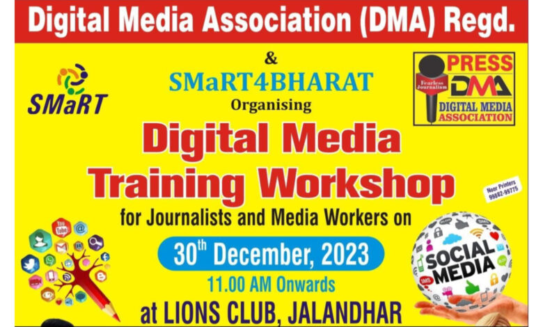 जालंधर में डिजिटल मीडिया एसोसिएशन (DMA) पत्रकारों के लिए Smart4Bharat के सहयोग से 30 दिसंबर को लायंस क्लब में लगाएगी Digital Media Training Workshop