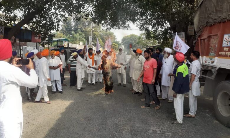 ਅੰਮ੍ਰਿਤਸਰ,ਜੰਡਿਆਲਾ ਗੁਰੂ (ਕੰਵਲਜੀਤ ਸਿੰਘ ਲਾਡੀ/ਦਵਿੰਦਰ ਸਿੰਘ ਸਹੋਤਾ): ਕਿਸਾਨ ਮਜਦੂਰ ਸੰਘਰਸ਼ ਕਮੇਟੀ ਪੰਜਾਬ ਜਿਲ੍ਹਾ ਅਮ੍ਰਿਤਸਰ ਦੇ ਜੋਨ ਜੰਡਿਆਲਾ ਗੁਰੂ ਦੇ ਪ੍ਰਧਾਨ ਚਰਨਜੀਤ ਸਿੰਘ ਸਫੀਪੁਰ, ਪ੍ਰਗਟ ਸਿੰਘ ਗੁਨੋਵਾਲ ਦੀ ਅਗਵਾਹੀ ਵਿਚ ਜੰਡਿਆਲਾ ਗੁਰੂ ਤਰਨ ਤਾਰਨ ਜੀ.ਟੀ ਰੋਡ ਜਾਮ ਕਰਕੇ ਨਜਦੀਕ ਬੰਡਾਲਾ ਵਿਖੇ ਪੰਜਾਬ ਮਾਨ ਸਰਕਾਰ ਦੇ ਖਿਲਾਫ ਪੁਤਲਾ ਫੂਕ ਮੁਜਾਹਰਾ ਕੀਤਾ ਗਿਆ | ਇਸ ਮੌਕੇ ਜਰਮਨਜੀਤ ਸਿੰਘ ਬੰਡਾਲਾ,ਮੁਖਬੈਨ ਸਿੰਘ ਅਤੇ ਕੰਵਲਜੀਤ ਸਿੰਘ ਜੋਧਾਨਗਰੀ ਵੱਲੋਂ ਪ੍ਰੈੱਸ ਨੂੰ ਜਾਣਕਾਰੀ ਦਿੰਦੇ ਦੱਸਿਆ ਕਿ ਜਿਲ੍ਹਾ ਹੁਸ਼ਿਆਰਪੁਰ ਦੇ ਥਾਣਾ ਦਸੂਹਾ ਅਧੀਨ ਪੈਂਦੇ ਪਿੰਡ ਬੁੱਧੋ ਬਰਕਤ ਦੇ ਇੱਕ ਪਰਿਵਾਰ 80 ਸਾਲਾ ਬਜੁਰਗ ਮਾਤਾ ਰਾਜਿੰਦਰ ਕੌਰ ਅਤੇ ਉਸਦੇ 2 ਪੁੱਤਰ ਹਨ, ਜਿਨ੍ਹਾਂ ਦੀ ਉਮਰ 45 ਸਾਲ ਅਤੇ 47 ਸਾਲ ਹੈ,ਜੋ ਨਧਾਨ ਅੰਨ੍ਹੇ ਅਤੇ ਅਪਾਹਜ ਹਨ, ਦੀ ਇਕ ਏਕੜ ਜਮੀਨ ਉਪਰ ਆਮ ਆਦਮੀ ਪਾਰਟੀ ਦੇ ਦਸੂਹਾ ਤੋਂ ਵਿਧਾਇਕ ਕਰਮਬੀਰ ਸਿੰਘ ਘੁੰਮਣ ਨੇ ਆਪਣੇ ਬੰਦਿਆ ਨਾਲ ਮਿਲਕੇ ਕਬਜਾ ਕਰਵਾਇਆ ਹੈ।