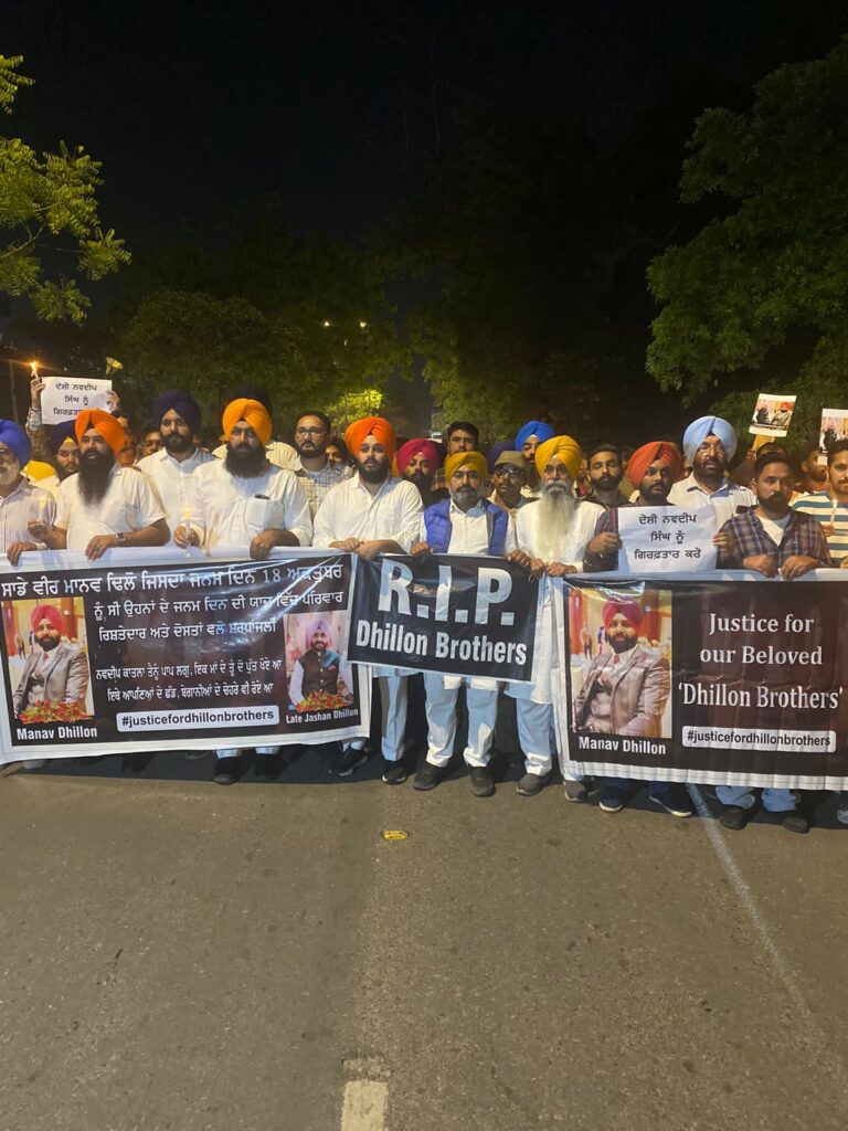 जालंधर, 19 अक्तूबर (कबीर सौंधी) : मानवजीत सिंह ढिल्लों और जश्नबीर सिंह ढिल्लों की आत्महत्या के मामले में आज द्वारा जालंधर में कैंडल मार्च निकाला गया। इस दौरान उनके साथ अकाली दल के सीनियर नेता बिक्रमजीत सिंह मजीठिया सहित अलग-अलग पार्टियों के नेता मौजूद रहे। बता दें कि 2 दिन पहले उच्च न्यायालय द्वार निलंबित एस.एच.ओ. नवदीप सिंह की जमानत याचिका खारिज कर दी गई, जबकि नामजद मुंशी बलविंदर कुमार की अग्रिम जमानत याचिका मंजूर कर ली गई।