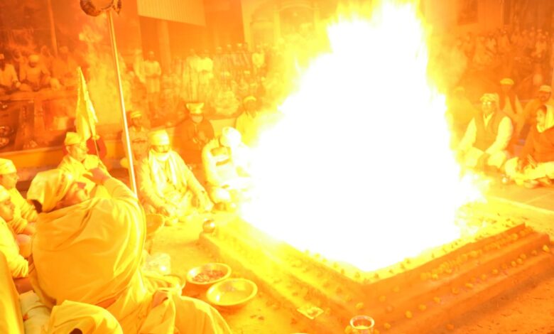 हवन यज्ञ में आहुतियाँ डालते हुए धाम के संस्थापक व संचालक नवजीत भारद्वाज व अन्य