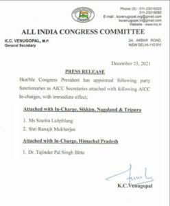 जालंधर 24 दिसंबर (कबीर सौंधी) : सरदार तेजिंदर सिंह बिट्टू को कांग्रेस हाईकमान ने बड़ी जिम्मेदारी सौंपी है। ऑल इंडिया कांग्रेस कमेटी ने तेजिंदर सिंह बिट्टू को हिमाचल प्रदेश के इंचार्ज के साथ अटैच किया है। तजिंदर सिंह बिट्टू पनसप के चेयरमैन है ओर जालंधर इंप्रूवमेंट ट्रस्ट के चेयरमैन भी रह चुके हैं।