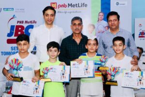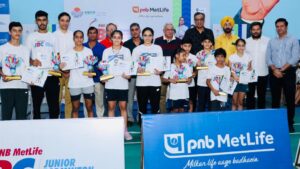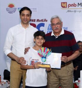 जालंधर, 05 अक्तूबर (हरजिंदर सिंह) : डिस्ट्रिक बैडमिंटन एसोसिएशन की ओर से रायजादा हंसराज स्टेडियम में आयोजित पीएनबी मेट लाइफ पंजाब ओपन बैडमिंटन टूर्नामेंट मंगलवार को संपन्न हुआ। तीन दिन तक चले टूर्नामेंट में पंजाब के युवा खिलाड़ियों ने हिस्सा लेकर अपनी प्रतिभा दिखाई। फाइनल समारोह में विजेताओं को ढाई लाख के नकद पुरस्कार समेत चमचमाती ट्राफीज और सर्टीफिकेट वितरित किए गए। इस दौरान मंच पर मुख्य अतिथि पंजाब बैडमिंटन एसोसिएशन के वरिष्ठ उपाध्यक्ष एमके चोपड़ा, माननीय सचिव अनुपम कुमारिया, उपाध्यक्ष राकेश खन्ना, कोषाध्यक्ष रितिन खन्ना और जेबीसी के आयोजन सचिव संकेत शेट्टी मौजूद रहे।