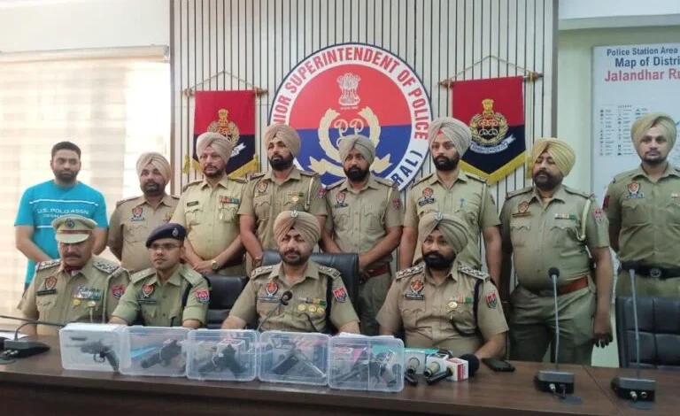 जालंधर, 04 अप्रैल (कबीर सौंधी) : देहात पुलिस ने क्राइम की वारदातों के खिलाफ कार्रवाई करते हुए आरोपी को हथियारों सहित गिरफ्तार किया है। प्रेस कांफ्रेंस में जानकारी देते हुए एस एस पी हरविंदर सिंह विर्क ने बताया कि सीआईए इंचार्ज इंस्पेक्टर पुष्प बाली इंचार्ज की अगुवाई में टीम ने मोटरसाइकिल सवार व्यक्ति को काबू कर उसके कब्जे में 5 पिस्टल समेत 4 रौंद बरामद किए है। एसएसपी ने बताया कि इंस्पेक्टर पुष्प बाली के स्टाफ को गुप्त सूचना मिली थी कि सूरज कुमार अपने साथी द्विंदर पाल उर्फ दीपू पुत्र कुलबीर सिंह के साथ मिलकर बड़े स्तर पर अवैध हथियार उत्तर प्रदेश से लाकर जालंधर के आसपास के इलाकों में सप्लाई करता है। उसने अपने कब्जे में अवैध रूप से असलहा रखा हुआ है जिसे थाना पतारा के इलाके में घूमते देखा गया था। जिसके बाद 3 अप्रैल को सीआईए के एएसआई राजबीर सिंह ने टीम ने थाना पतारा के अधीन इलाके में नाकेबंदी की। इस दौरान व्यक्ति ने सूचना दी कि सूरज और दविंदर मिलकर एक गैंग बनाकर इस्लामाबाद से नाजायज असलहा लाकर जालंधर के आसपास के इलाके में सप्लाई करते है।