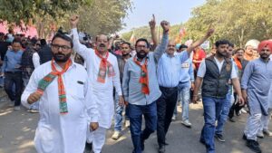 जालंधर, 10 मार्च (कबीर सौंधी) : आज पंजाब प्रधान अश्वनी शर्मा के नेतृत्व में पंजाब की बिगड़ी कानून व्यवस्था और राज्य में बढ़ती अलगाववादी ताकतों के खिलाफ पंजाब की आम आदमी पार्टी की गूंगी और बहरी सरकार को जगाने के लिए विधानसभा का घेराव किया गया। इस मोके प्रदेश भाजपा प्रवक्ता मोहिंदर भगत, सरदार नरिंदर सिंह रैना सह प्रभारी भाजपा पंजाब व् बड़ी संख्या में भाजपा कार्यकर्ता साथ थे। भाजपा कार्यकर्ताओं ने गिरफ्तारिआं भी दी।