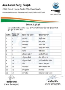 पंजाब चुनाव : आम आदमी पार्टी ने लुधियाना समेत पंजाब में 30 हलकों के उम्मीदवारों की घोषणा की, पढ़ें पूरी लिस्ट