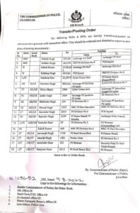 जालंधर, 09 अगस्त (कबीर सौंधी) : पंजाब पुलिस के 18 मुलाजिमों के हुए तबादले। देखें पूरी लिस्ट :