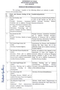 साथ ही उन्हें प्रिंसिपल सेक्रेट्री मेडिकल शिक्षा एवं अनुसंधान का अतिरिक्त चार्ज सौंपा है। जबकि हुसन लाल को प्रिंसिपल सेक्रेट्री इन्वेस्टमेंट प्रमोशन नियुक्त करते हुए उन्हें प्रिंसिपल सेक्रेट्री इंडस्ट्री कॉमर्स और प्रिंसिपल सेक्रेट्री इनफार्मेशन टेक्नोलॉजी के अतिरिक्त चार्ज दिया गया है।