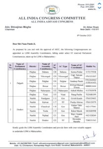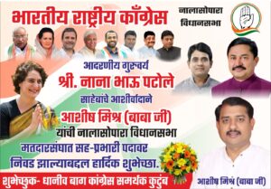 पालघर लोकसभा चुनाव के लिए उत्तर भारतीय नेता आशीष मिश्रा (बाबा जी) को नालासोपारा विधानसभा सह-प्रभारी बनाकर प्रदेश अध्यक्ष नाना पटोले ने चुनावी बिगुल बजाया
