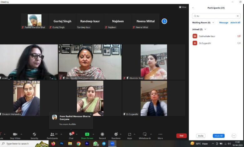 जालंधर, 19 अप्रैल (धर्मेंद्र सौंधी) : पी.सी.एम.एस.डी. कॉलेज फॉर विमेन, जालंधर के विमेन एंपावरमेंट सेल ने “टेक्सचुअल इमैजिनरी ऑफ़ विमेन विद स्पेशल रेफरेंस टू कश्मीर” विषय पर एक राष्ट्रीय वेबिनार का आयोजन किया। डॉ सुमन जम्वाल, (इतिहास विभाग,जम्मू विश्वविद्यालय के प्रमुख एवम फॉर्मर डॉयरेक्टर ऑफ़ विमेन स्ट्डीज ) दिन के रिसोर्स पर्सन थे। प्रारंभ में वेबिनार की संयोजक श्रीमती कवलजीत कौर ने मुख्य अतिथि का प्रतिभागियों से परिचय कराया और दर्शकों को विषय से भी परिचित कराया।