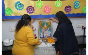 जालंधर, 27 जनवरी (धर्मेंद्र सौंधी) : पी.सी.एम.एस.डी. कॉलेज फॉर विमेन, जालंधर में ‘बसंत पंचमी’ अपने पूरे रूप और वैभव के साथ मनाई गई। यह दिन माघ के हिंदू महीने के शुक्ल पक्ष की पंचमी तिथि को मनाया जाता है। बसंत पंचमी को आमतौर पर ‘सरस्वती पूजा’ के रूप में जाना जाता है। इस दिन ज्ञान, भाषा, संगीत और कला के विशाल भंडार की अवतार देवी सरस्वती की पूजा की जाती है। चूँकि देवी सरस्वती संगीत, कला और ज्ञान से जुड़ी हैं, इसलिए इस दिन को विद्या आरंभ के महत्वपूर्ण अनुष्ठान द्वारा भी चिह्नित किया जाता है। यह संस्कार छोटे बच्चों को शिक्षा और औपचारिक शिक्षा की ओर ले जाने के बारे में है। पीला रंग बसंत पंचमी और वसंत से जुड़ा है, जो ऊर्जा और पीले क्षेत्रों का प्रतिनिधित्व करता है।