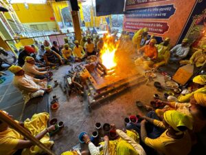 जालंधर 04 अप्रैल (कबीर सौंधी) : मां बगलामुखी धाम गुलमोहर सिटी नजदीक लम्मा पिंड चौक जालंधर में सप्ताहिक श्रृंखलाबद्ध दिव्य हवन यज्ञ का आयोजन विधिवत रुप से मंदिर परिसर में किया गया। सर्व प्रथम ब्राह्मणों द्वारा मुख्य यजमान नरेंद्र कुमार मैहरा से सपरिवार पंचोपचार पूजन षोढषोपचार पूजन नवग्रह पूजन उपरांत हवन यज्ञ में आहुतियां डलवाई गई।
