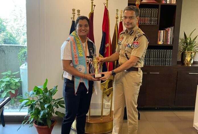 जालंधर, 04 अक्तूबर (कबीर सौंधी) : देहात की महिला सब इंस्पेक्टर मीना कुमारी ने ट्रैफिक एजुकेशन सेल द्वारा आयोजित सीनियर नेशनल पावरलिफ्टिंग में गोल्ड मेडल जीता है। इसके साथ ही उनका चयन वर्ल्ड पावरलिफ्टिंग चैंपियनशिप (यूएसए) में भी हुआ है। उनकी इस जीत पर डीजीपी गौरव यादव ने उन्हें बधाई दी है।