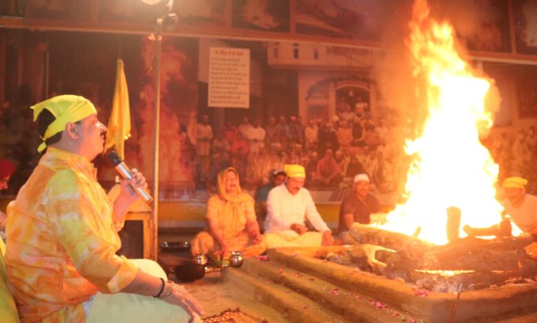 सर्व प्रथम मुख्य यजमान पूनम प्रभाकर से वैदिक रीति अनुसार गौरी गणेश, नवग्रह, पंचोपचार, षोडशोपचार, कलश, पूजन उपरांत ब्राह्मणों ने आए हुए सभी भक्तों से हवन-यज्ञ में आहुतियां डलवाई । इस सप्ताह श्री शनिदेव महाराज के जाप उपरांत मां बगलामुखी जी के निमित्त भी माला मंत्र जाप एवं हवन यज्ञ में विशेष रूप आहुतियां डाली गई। हवन-यज्ञ की पूर्णाहुति के उपरांत नवजीत भारद्वाज ने आए हुए भक्तों से अपनी बात कहते हुए कहा कि मानव जाति का भविष्य अपने किये गए कर्मो के आधार पर तय होता है। अच्छे कर्म करने वाले लोगों का जीवन काल सुखमय शांतिमय एवं निरोगमय व्यतीत होता है तथा बुरे काम करने वाले लोगों का जीवन दु:खमय अशांत तथा रोग भय होता है।