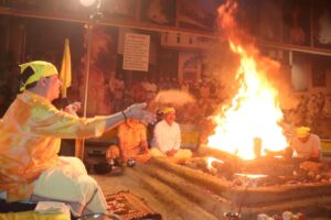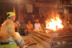 सर्व प्रथम मुख्य यजमान पूनम प्रभाकर से वैदिक रीति अनुसार गौरी गणेश, नवग्रह, पंचोपचार, षोडशोपचार, कलश, पूजन उपरांत ब्राह्मणों ने आए हुए सभी भक्तों से हवन-यज्ञ में आहुतियां डलवाई । इस सप्ताह श्री शनिदेव महाराज के जाप उपरांत मां बगलामुखी जी के निमित्त भी माला मंत्र जाप एवं हवन यज्ञ में विशेष रूप आहुतियां डाली गई। हवन-यज्ञ की पूर्णाहुति के उपरांत नवजीत भारद्वाज ने आए हुए भक्तों से अपनी बात कहते हुए कहा कि मानव जाति का भविष्य अपने किये गए कर्मो के आधार पर तय होता है। अच्छे कर्म करने वाले लोगों का जीवन काल सुखमय शांतिमय एवं निरोगमय व्यतीत होता है तथा बुरे काम करने वाले लोगों का जीवन दु:खमय अशांत तथा रोग भय होता है।