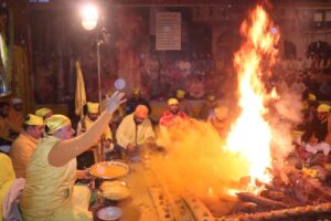 इस यज्ञ में उपस्थित मां भक्तो को आहुतियां डलवाने के बाद नवजीत भारद्वाज ने उपस्थित मां भक्तो को कहा कि केवल भगवान का नाम ही एक ऐसा धन है जो मनुष्य का कभी पीछा नहीं छोड़ता और अंत तक साथ देता है इसलिए अगर कोई धन एकत्रित करना है तो प्रभु नाम का करें। इसके लिए तूने सब कुछ दांव पर लगा दिया है अंत में वो माया भी साथ नहीं देती है, इसलिए कहा गया है कलयुग में केवल नाम अधारा, सुमीर सूमीर नर उतरे पारा लेकिन हैरत की बात है कि कोई भी इस मुफ्त के धन को लेने के लिए तैयार नहीं है।