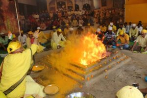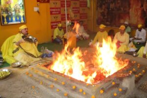 हवन-यज्ञ करते हुए नवजीत भारद्वाज हवन-यज्ञ की अग्नि में ऊं के दर्शन