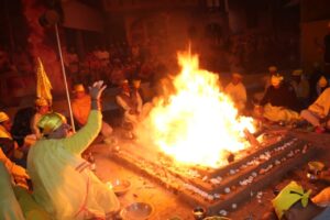 जालंधर, 11 नवंबर (कबीर सौंधी) : मां बगलामुखी धाम नजदीक लम्मां पिंड चौंक होशियारपुर रोड़ पर स्थित गुलमोहर सिटी में धाम के संस्थापक एवं संचालक नवजीत भारद्वाज की अध्यक्षता में साप्ताहिक मां बगलामुखी हवन यज्ञ करवाया गया। सबसे पहले पं. अविनाश गौतम एवं पं. पिंटू शर्मा ने नवग्रह, पंचोपचार, षोढषोपचार, गौरी, गणेश, कुंभ पूजन, मां बगलामुखी के निमित्त माला जाप कर मुख्य यजमानो विक्रम भसीन से सपरिवार पूजा अर्चना उपरांत हवन यज्ञ में आहुतियां डलवाईं ।