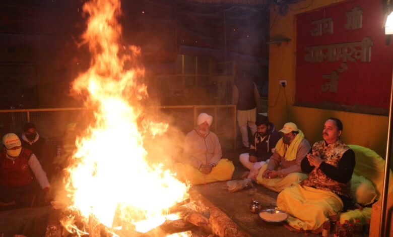 हवन यज्ञ में आहुतियाँ डालते हुए धाम के संस्थापक व संचालक नवजीत भारद्वाज व अन्य