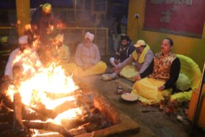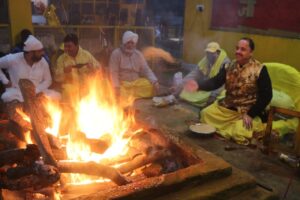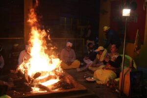 हवन यज्ञ में आहुतियाँ डालते हुए धाम के संस्थापक व संचालक नवजीत भारद्वाज व अन्य