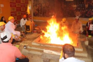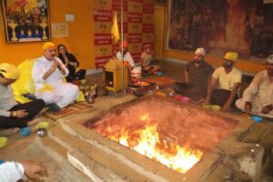 सर्व प्रथम वैदिक रीति अनुसार गौरी गणेश, नवग्रह, पंचोपचार, षोडशोपचार, कलश, पूजन मुख्य यजमान से सपरिवार हवन यज्ञ में आहुतियां डलवाई । इस सप्ताह श्री शनिदेव महाराज के जाप उपरांत मां बगलामुखी जी के निमित्त भी माला मंत्र जाप एवं हवन यज्ञ में विशेष रूप आहुतियां डाली गई। हवन-यज्ञ की पूर्णाहुति के उपरांत नवजीत भारद्वाज ने आए हुए भक्तों से अपनी बात कहते कहा कि आपसी विवाद अदालत से ही नहीं सुलझते बल्कि इसका एक उपाय सत्संग भी है।