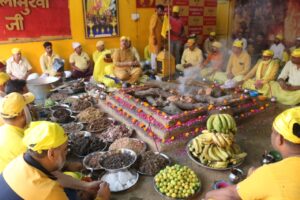 हवन यज्ञ में आहुतियां डालते हुए धाम के संस्थापक व संचालक नवजीत भारद्वाज