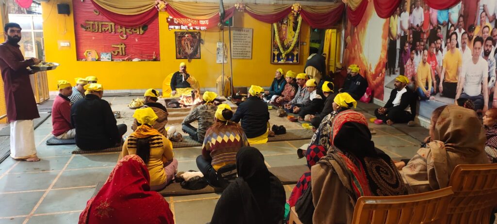 इस सप्ताह श्री शनिदेव महाराज के जाप उपरांत मां बगलामुखी जी के निमित्त आहुतियां डाली गई। हवन-यज्ञ उपरांत आए हुए भक्तजनों से अपनी बात कहते हुए नवजीत भारद्वाज ने कहा कि हमारे भगवान, गुरु या माता-पिता हमारे ऊपर जो उपकार करते हैं उनके अंदर एक भावना पनपती है कि हम अपना जीवन तो अच्छे से जी रहे हैं, लेकिन हमारी संतान का, हमारे शिष्य का और हमारे भक्तों का जीवन बहुत अच्छा बन जाए। सारा संसार अच्छाई की या अच्छे बनने की बातें तो करता है, लेकिन काम नहीं करता। अगर कोई व्यक्ति बड़ी-बड़ी बातें करने के साथ-साथ में छोटे-छोटे काम भी करे तो उसके जीवन में बहुत परिवर्तन आ सकता है। यह भाव नवजीत भारद्वाज जी ने आए हुए भक्तों को संबोधित करते हुए व्यक्त किए।