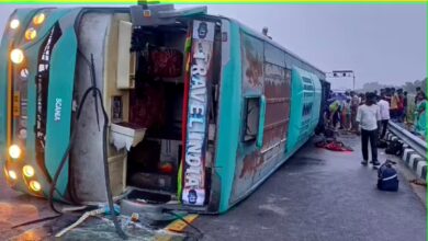 बड़ा हादसा : सड़क दुर्घटना में पलटी बस, 11 की मौत व 22 घायल