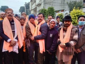 जालंधर, 09 फरवरी (धर्मेंद्र सौंधी) : सतगुरु रविदास महाराज जी के प्रकाश पर्व के उपलक्ष्य में प्रभातफेरियां का मोहिंदर भगत ने किया स्वागत।‌ जालंधर वैस्ट में श्री गुरु रविदास जी के प्रकाश पर्व के उपलक्ष्य में प्रभातफेरियां जालंधर वैस्ट से प्रत्याशी मोहिंदर भगत के निवास पर पहुंची,यहां मोहिंदर भगत,अश्वनी भगत एवं परिवार ने पुष्प वर्षा कर प्रभातफेरी का स्वागत किया और नत्मस्तक होकर आशीर्वाद प्राप्त किया।