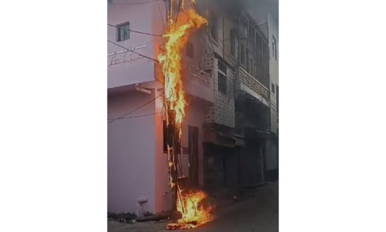 बिजली के पोल में लगी आग, मची अफरा तफरी
