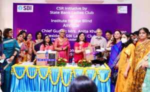 अमृतसर 03 अक्टूबर (साहिल गुप्ता) : स्टेट बैंक ऑफ इंडिया के द्वारा मानवता के प्रति पहल करते हुए आज स्टेट बैंक ऑफ इंडिया के लेडीज क्लब की अध्य्क्ष अनीता खरा जो कि एसबीआई के चेयरमैन दिनेश खरा की धर्मपत्नी है उनके नेतृत्व में मुंबई से अमृतसर आ कर अन्ध विद्यालय में बच्चों को ज़रूरत की कुछ वस्तुएँ भेंट करने का कार्यक्रम आयोजित किया गया। इस अवसर पर अश्वनी भाटिया एमडी एसबीआई की धर्म पत्नी पूनम भाटिया सहित क्लब की सभी सीनियर मेंबर मौजूद थी। अंध विद्यालय पहुंचने पर उनका स्वागत सेक्रेटरी अरुण कपूर द्वारा किया गया और सब को अंध विद्यालय का दौरा करवा कर कार्यप्रणाली के बारे में अवगत कराया गया ।