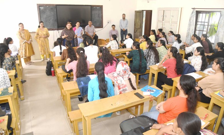 जालंधर, 17 जुलाई (धर्मेंद्र सौंधी) : हंसराज महिला महाविद्यालय, जालंधर में प्राचार्या प्रो. डॉ. (श्रीमती) अजय सरीन के मार्गदर्शन में टीडीसी भाग-1 में (सभी स्ट्रीम) व यूजी डिप्लोमा की छात्राओं के लिए एक सामान्य ओरिएन्टेशन कार्यक्रम का आयोजन किया गया। कार्यक्रम के इंचार्ज डॉ. आशमीन कौर, आईक्यूएसी कोआर्डिनेटर ने नवागत छात्राओं को कॉलेजों के विभिन्न कोसों, टाईम टेबल, चयनित विषय को बदलने, स्कॉलरशिप मेनटोरिंग समूहों के बारे में व्यापक जानकारी प्रदान की। पंजाबी विभागाध्यक्ष व डीन यूथ वैलफेयर डॉ. नवरूप कौर ने अनुशासन के महत्त्व पर बल देते हुए कांलेज के विभिन्न नियमों के अनुपालन पर जोर दिया। उन्होंने छात्राओं को अपनी कला व प्रतिभा को निखारने व संवारने के लिए कॉलेज की विभिन्न सब्जेक्ट सोसाइटी व संगठनों से जुड़ने की बात की।