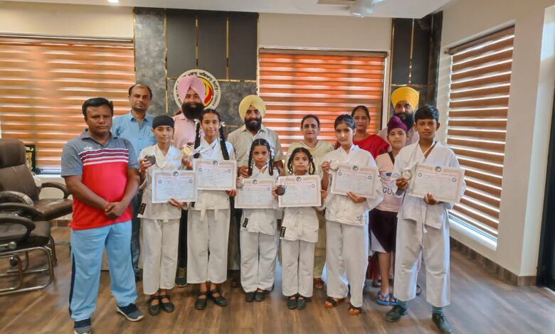 ਜੰਡਿਆਲਾ ਗੁਰੂ (ਕੰਵਲਜੀਤ ਸਿੰਘ ਲਾਡੀ, ਦਵਿੰਦਰ ਸਿੰਘ ਸਹੋਤਾ) : ਐਨ.ਕੇ.ਐਫ ਥਰਡ ਨੈਸ਼ਨਲ ਕਰਾਟੇ ਚੈਂਪੀਅਨਸ਼ਿਪ 2022 ਕੁਰੁਕਸ਼ੇਤਰ ਯੂਨੀਵਰਸਿਟੀ ਵੱਲੋਂ ਕਰਵਾਏ ਗਏ ਕਰਾਟੇ ਚੈੰਪੀਅਨਸ਼ਿਪ ਮੁਕਾਬਲੇ ਵਿੱਚ ਸਕੂਲ ਦੀ ਕਰਾਟੇ ਟੀਮ ਦੇ ਵਿਿਦਆਰਥੀਆਂ ਨੇ ਇਕ ਵਾਰ ਫਿਰ ਆਪਣੀ ਕਾਬਲੀਅਤ ਦਾ ਲੋਹਾ ਮਨਵਾਇਆ ਅਤੇ ਜੋਰਦਾਰ ਪ੍ਰਰਦਰਸ਼ਨ ਕਰਦਿਆਂ ਆਪਣੇ ਸਕੂਲ ਦਾ ਨਾਮ ਰੋਸ਼ਨ ਕੀਤਾ । ਇਨ੍ਹਾਂ ਮੁਕਾਬਲਿਆਂ ਵਿੱਚ ਕੋਮਲਦੀਪ ਕੌਰ ਸਪੁੱਤਰੀ ਸ. ਜਗਦੀਪ ਸਿੰਘ (ਸੱਤਵੀਂ – ਈ) 38 ਕਿਲੋ ਵੇਟ ਵਿੱਚ ਗੋਲਡ ਮੈਡਲੀਸਟ ਪੰਜਾਬ, ਮਨਦੀਪ ਕੌਰ (ਤੀਸਰੀ -ਸੀ) 32 ਕਿਲੋ ਵੇਟ ਸਿਲਵਰ ਮੈਡਲ, ਤਨਵੀਰ ਕੌਰ (ਤੀਸਰੀ – ਸੀ) 20 ਕਿਲੋ ਵੇਟ ਤਾਂਬੇ ਦਾ ਤਮਗਾ, ਸਹਿਜ ਨੂਰ ਕੌਰ (ਤੀਸਰੀ-ਸੀ) 25 ਕਿਲੋ ਵੇਟ ਸਿਲਵਰ ਮੈਡਲ, ਅਕਾਲਪ੍ਰੀਤ ਕੌਰ (ਸੱਤਵੀ-ਸੀ) ਸਿਲਵਰ ਮੈਡਲ 46 ਕਿਲੋ, ਗੁਰਲੀਨ ਕੌਰ (ਅੱਠਵੀ-ਬੀ) 47 ਕਿਲੋ ਤਾਂਬੇ ਦਾ ਤਮਗਾ, ਅਦਿੱਤਿਆ ਰਾਜ (ਅੱਠਵੀ-ਡੀ) 46 ਕਿਲੋ ਸਿਲਵਰ ਮੈਡਲ ਕੁਰੂਕਸ਼ੇਤਰ ਨੈਸ਼ਨਲ ਕਰਾਟੇ ਚੈਂਪੀਅਨਸ਼ਿਪ ਮੁਕਾਬਲਿਆਂ ਕੁਆਲੀਫਾਈ ਹੋ ਕੇ ਸਕੂਲ ਦਾ ਨਾਮ ਰੋਸ਼ਨ ਕੀਤਾ ।