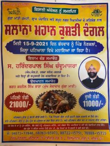 ਭੁੰਨਰਹੇੜੀ,ਪਟਿਆਲਾ 10 ਸਤੰਬਰ, (ਕ੍ਰਿਸ਼ਨ ਗਿਰ) : ਮਿਤੀ 15-9-2021, ਦਿਨ ਬੁੱਧਵਾਰ ਨੂੰ ਪਿੰਡ ਨੈਣ ਕਲਾਂ ਵਿਧਾਨ ਸਭਾ ਹਲਕਾ ਸਨੌਰ ਜਿਲ੍ਹਾ ਪਟਿਆਲਾ ਵਿਖੇ ਗੁੱਗਾ ਮਾੜ੍ਹੀ ਕਮੇਟੀ, ਗਰਾਮ ਪੰਚਾਇਤ,ਸਪੋਰਟਸ ਕਲੱਬ ਅਤੇ ਸਮੂਹ ਨਗਰ ਨਿਵਾਸੀ ਨੈਣ ਕਲਾਂ ਦੇ ਸਹਿਯੋਗ ਨਾਲ ਵਿਸ਼ਾਲ ਕੁਸਤੀ ਦੰਗਲ ਕਰਵਾਇਆ ਜਾ ਰਿਹਾ ਹੈ,ਜਿਸ ਵਿੱਚ