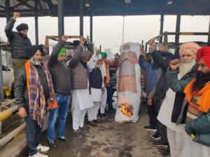 ਜੰਡਿਆਲਾ ਗੁਰੂ, 05 ਜਨਵਰੀ (ਕੰਵਲਜੀਤ ਸਿੰਘ ਲਾਡੀ) : ਕਿਸਾਨ ਸੰਘਰਸ਼ ਕਮੇਟੀ ਪੰਜਾਬ ਵੱਲੋਂ ਅੱਜ ਨਿੱਜਰਪੁਰਾ ਟੋਲ ਪਲਾਜ਼ੇ ਤੇ ਪ੍ਰਧਾਨ ਮੰਤਰੀ ਮੌਦੀ ਦੇ ਪੁਤਲੇ ਸਾੜੇ ਗਏ। ਜਿਸ ਦੀ ਗਵਾਹੀ ਕਿਸਾਨ ਜਥੇਬੰਦੀ ਦੇ ਜ਼ਿਲ੍ਹਾ ਪ੍ਰਧਾਨ ਦਵਿੰਦਰ ਸਿੰਘ ਚਾਟੀਵਿੰਡ, ਜ਼ੋਨ ਪ੍ਰਧਾਨ ਮੰਗਲ ਸਿੰਘ ਰਾਮਪੁਰਾ, ਸੋਨੂੰ ਮਾਹਲ ਸੁਲਤਾਨਵਿੰਡ, ਪਰਮਜੀਤ ਸਿੰਘ ਵਰਪਾਲ ਨੇ ਕੀਤੀ । ਇਸ ਮੌਕੇ ਕਿਸਾਨ ਆਗੂ ਬੋਲਦੇ ਹੋਏ ਕਿਹਾ ਕਿ ਭਾਰਤ ਦੇ ਪ੍ਰਧਾਨ ਮੰਤਰੀ ਨਰਿੰਦਰ ਮੋਦੀ ਦਾ ਵਿਰੋਧ ਉਨਾ ਚਿਰ ਤੱਕ ਜਾਰੀ ਰਹੇਗਾ ਜਿੰਨਾ ਚਿਰ ਤਕ ਕਿਸਾਨੀ ਅੰਦੋਲਨ ਲੜਦਿਆਂ ਸ਼ਹੀਦ ਹੋਏ ਕਿਸਾਨਾਂ ਦਾ ਬਣਦਾ ਮੁਆਵਜ਼ਾ ਨਹੀਂ ਮਿਲਦਾ ਜਾਂਦਾ। ਐੱਮ.ਐੱਸਪੀ ਕਨੂੰਨ ਤੇ ਗਾਰੰਟੀ ਨਹੀਂ ਮਿਲਦੀ ਅਤੇ ਲਖੀਮਪੁਰ ਖੀਰੀ ਦੇ ਸ਼ਹੀਦਾਂ ਦੇ ਕਾਤਲਾਂ ਨੂੰ ਮੰਤਰੀ ਮੰਡਲ ਵਿੱਚੋਂ ਬਾਹਰ ਕੱਢ ਕੇ ਜੇਲ੍ਹਾਂ ‘ਚ ਨਹੀਂ ਸੁੱਟਿਆ ਜਾਂਦਾ ।