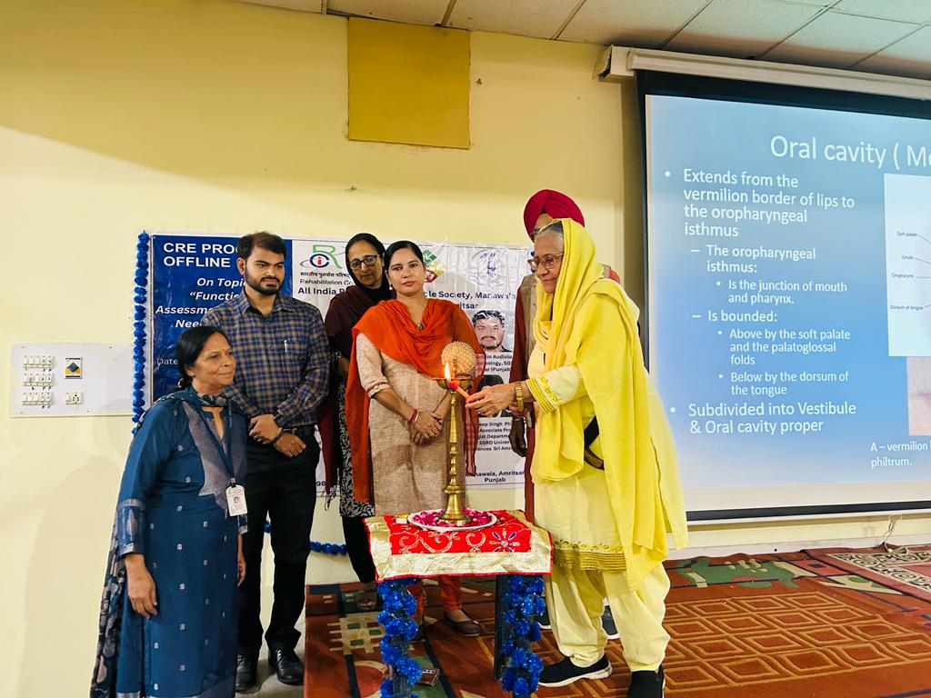 ਜੰਡਿਆਲਾ ਗੁਰੂ, 26 ਅਕਤੂਬਰ (ਕੰਵਲਜੀਤ ਸਿੰਘ) : ਅੱਜ ਆਲ ਇੰਡੀਆ ਪਿੰਗਲਵਾੜਾ ਚੈਰੀਟੇਬਲ ਸੁਸਾਇਟੀ (ਰਜਿ:) ਅੰਮ੍ਰਿਤਸਰ ਅਤੇ ਪਿੰਗਲਵਾੜਾ ਸੋਸਾਇਟੀ ਆਫ ਓਨਟਾਰੀਓ (ਕੇਨੈਡਾ) ਦੀ ਰਹਿਨੁਮਾਈ ਹੇਠ ਚੱਲ ਰਹੇ ਭਗਤ ਪੂਰਨ ਸਿੰਘ ਇੰਸਟੀਚਿਊਟ ਫਾਰ ਸਪੈਸ਼ਲ ਨੀਡਜ਼ ਮਾਨਾਂਵਾਲਾ ਵੱਲੋਂ ਤਿੰਨ ਰੋਜ਼ਾ ਕੰਨਟੀਨਿਊਟੀ ਰੀਹੈਬੀਲੇਸ਼ਨ ਐਜੂਕੇਸ਼ਨ ਉੱਪਰ ਆਫ ਲਾਈਨ ਪ੍ਰੋਗਰਾਮ ਕਰਵਾਇਆ ਗਿਆ। ਇਸ ਮੌਕੇ ਪ੍ਰੋਗਰਾਮ ਦਾ ਆਗਾਜ਼ ਪਿੰਗਲਵਾੜਾ ਸੰਸਥਾ ਦੇ ਮੁੱਖ ਸੇਵਾਦਾਰ ਡਾ: ਇੰਦਰਜੀਤ ਕੌਰ ਅਤੇ ਪ੍ਰੀਤਇੰਦਰ ਕੌਰ ਸੁਸਾਇਟੀ ਮੈਂਬਰ ਨੇ ਸਾਂਝੇ ਤੌਰ ‘ਤੇ ਸ਼ਮਾ ਰੌਸ਼ਨ ਕਰਕੇ ਕੀਤਾ।
