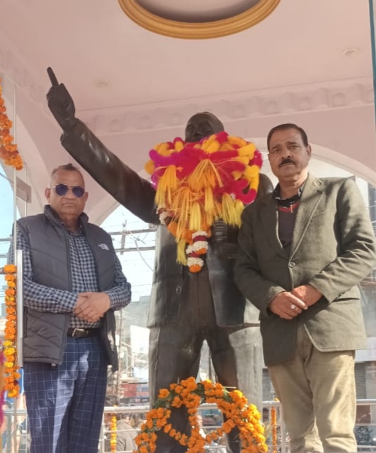 ਜਲੰਧਰ/ਨਕੋਦਰ 07 ਦਸੰਬਰ (ਰਾਜ ਕਟਾਰੀਆ): ਗੁਰੁੂ ਰਵਿਦਾਸ ਧਾਮ ਚ ਬਾਬਾ ਸਾਹਿਬ ਜੀ ਦਾ ਨਿਰਮਾਣ ਦਿਵਸ ਮਨਾਇਆ ਗਿਆ। ਜਿਸ ਵਿੱਚ ਬਹੁਜਨ ਸਮਾਜ ਪਾਰਟੀ ਦੇ ਜਰਨਲ ਸਕੱਤਰ ਪੰਜਬ ਗੁਰਮੇਲ ਚੁਬਰ ਗੁਰੂ ਰਵਿਦਾਸ ਧਾਮ ਨਕੋਦਰ ਪਹੁੰਚੇ ਤੇ ਬਾਬਾ ਸਾਹਿਬ ਦੇ ਫੁਲਾ ਦੇ ਹਾਰ ਪਾ ਕੇ ਜਾਦ ਕੀਤਾ। ਸਾਰੇ ਦੇਸ ਵਾਸੀਆਂ ਨੂੰ ਸੰਦੇਸ਼ ਦਿਤਾ ਕੀ ਬਾਬਾ ਸਾਹਿਬ ਅੰਬੇਦਕਰ ਨੇ ਆਪਣਾ ਜੀਵਨ ਆਪਣੇ ਸਮਾਜ ਨੂੰ ਜਗਾਉਣ ਚ ਲਾਈਆ ਤੇ ਸਾਨੂੰ ਵੀ ਚਾਹੀਦਾ ਹੈ ਕਿ ਬਾਬਾ ਸਾਹਿਬ ਦੇ ਸੰਦੇਸਾਂ ਤੇ ਸਮਾਜ ਨੁੰ ਚਲਣਾਂ ਚਾਹੀਦਾ ਹੈ ਤੇ ਬਾਬਾ ਸਾਹਿਬ ਦੇ ਫੁਲਾ ਦੇ ਹਾਰ ਪਾ ਕੇ ਪ੍ਰੀ ਨਿਰਮਾਣ ਦਿਵਸ ਮਨਾਇਆ।