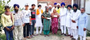 ਮ੍ਰਿਤਕ ਮਜ਼ਦੂਰਾਂ ਦੇ ਪਰਿਵਾਰਕ ਮੈਂਬਰਾਂ ਨੂੰ ਇੱਕ-ਇੱਕ ਲੱਖ ਰੁਪਏ ਦੀ ਆਰਥਿਕ ਸਹਾਇਤਾ ਰਾਸ਼ੀ ਦੇ ਚੈੱਕ ਦਿੰਦੇ ਹੋਏ ਜਥੇ.ਗੁਰਬਚਨ ਸਿੰਘ ਕਰਮੂੰਵਾਲਾ ਮੈਂਬਰ ਐਸ.ਜੀ.ਪੀ.ਸੀ।