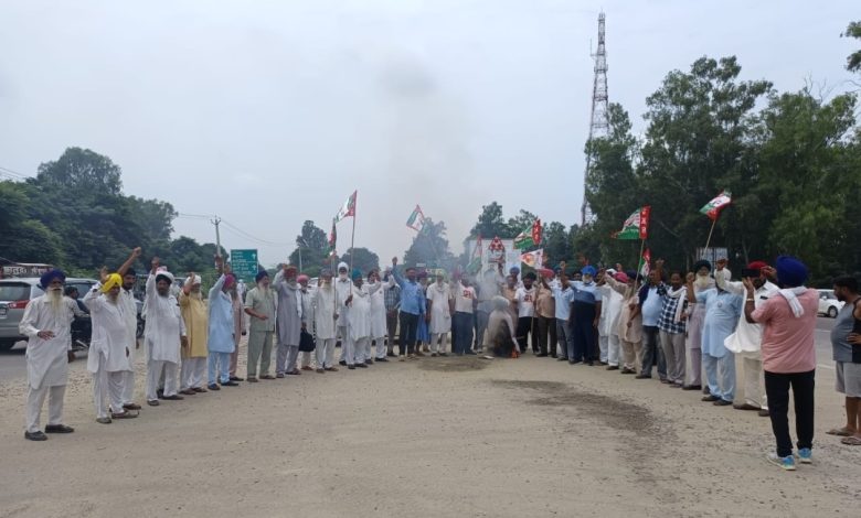 ਰਈਆ, 13 ਅਗਸਤ (ਸੁਖਵਿੰਦਰ ਬਾਵਾ) : ਸਥਾਨਕ ਕਸਬੇ ਅੰਦਰ ਜਮਹੂਰੀ ਕਿਸਾਨ ਸਭਾ ਤਹਿਸੀਲ ਇਕਾਈ ਬਾਬਾ ਬਕਾਲਾ ਸਾਹਿਬ ਦੇ ਵਰਕਰਾਂ ਦੀ ਵਿਸ਼ਾਲ ਮੀਟਿੰਗ ਕੀਤੀ ਗਈ ਅਤੇ ਮੀਟਿਗ ਤੋਂ ਬਾਅਦ ਸੰਯੁਕਤ ਕਿਸਾਨ ਮੋਰਚੇ ਦੇ ਸੂਬਾਈ ਸੱਦੇ ਨੂੰ ਲਾਗੂ ਕਰਦਿਆਂ ਕਾਰਪੋਰੇਟੋ ਭਾਰਤ ਛੱਡੋ ਦੇ ਨਾਅਰੇ ਹੇਠ ਅਮਰੀਕੀ ਰਾਸ਼ਟਰਪਤੀ ਡੋਨਾਲਡ ਟਰੰਪ ਅਤੇ ਭਾਰਤ ਦੇ ਪ੍ਰਧਾਨ ਮੰਤਰੀ ਨਰਿੰਦਰ ਮੋਦੀ ਦੇ ਪੁਤਲੇ ਸਾੜੇ ਗਏ। ਮੀਟਿੰਗ ਦੀ ਪ੍ਰਧਾਨਗੀ ਸੁਰਜੀਤ ਸਿੰਘ ਤਲਵੰਡੀ, ਸੱਜਣ ਸਿੰਘ ਤਿਮੋਵਾਲ ਆਦਿ ਆਗੂਆਂ ਨੇ ਕੀਤੀ।