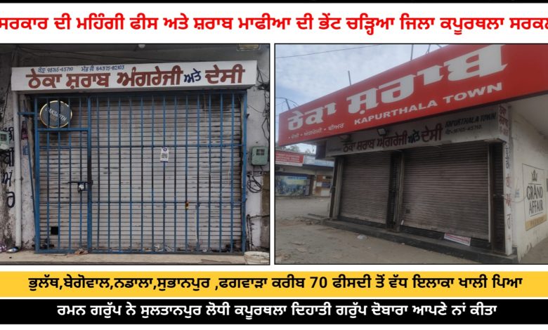 ਸਰਕਾਰ ਦੀ ਮਹਿੰਗੀ ਫੀਸ ਅਤੇ ਸ਼ਰਾਬ ਮਾਫੀਆ ਦੀ ਭੇਂਟ ਚੜ੍ਹਿਆ ਜਿਲਾ ਕਪੂਰਥਲਾ ਸਰਕਲ