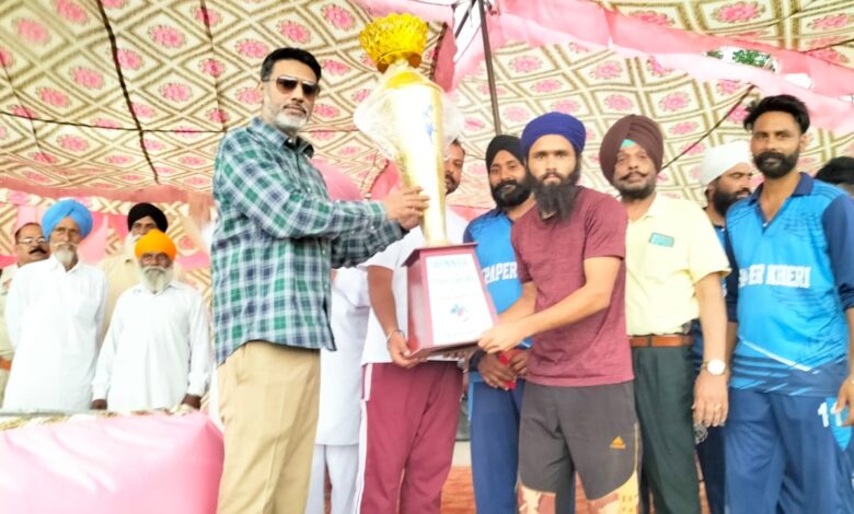 ਜੰਡਿਆਲਾ ਗੁਰੂ, 15 ਜੂਨ (ਕੰਵਲਜੀਤ ਸਿੰਘ ਲਾਡੀ) : ਅੱਜ ਜੰਡਿਆਲਾ ਗੁਰੂ ਨਜਦੀਕ ਪਿੰਡ ਸਫ਼ੀਪੁਰ ਵਿਖੇ ਕਾਰਗਿਲ ਸ਼ਹੀਦ ਸਰਤਾਜ ਸਿੰਘ ਦੀ ਯਾਦ ਵਿਚ ਕ੍ਰਿਕੇਟ ਟੂਰਨਾਮੈਂਟ ਕਰਵਾਇਆ ਗਿਆ। ਜਿਸ ਵਿੱਚ 25 ਟੀਮਾਂ ਨੇ ਭਾਗ ਲਿਆ ਜਿਸ ਵਿੱਚ ਜੇਤੂ ਟੀਮ ਪਿੰਡ ਖਾਪੜਖੇਰੀ ਨੂੰ ਸ. ਸੁਖਵਿੰਦਰ ਸਿੰਘ ਡੈਨੀ ਬੰਡਾਲਾ ਸਾਬਕਾ ਐੱਮ ਐਲ ਏ ਵਲੋਂ 15000 ਰੁਪਏ ਇਨਾਮ ਦਿੱਤਾ ਗਿਆ ਅਤੇ ਦੂਜੇ ਨੰਬਰ ਵਾਲੀ ਟੀਮ ਦੁਬੁਰਜੀ ਨੂੰ 10000 ਰੁਪਏ ਅਤੇ 1-1 ਟਰਾਫੀ ਦੇ ਕੇ ਸਨਮਾਨਿਤ ਕੀਤਾ ਗਿਆ। ਆਪਣੇ ਸੰਬੋਧਨ ਵਿੱਚ ਸੁਖਵਿੰਦਰ ਸਿੰਘ ਡੈਨੀ ਨੇ ਦਸਿਆ ਕਿ ਨਵੀਂ ਪੀੜ੍ਹੀ ਨੂੰ ਸਵਸਥ ਰੱਖਣ ਲਈ ਖੇਡਾਂ ਵੱਲ ਵਿਸ਼ੇਸ਼ ਧਿਆਨ ਦੇਣਾ ਚਾਹੀਦਾ ਹੈ।