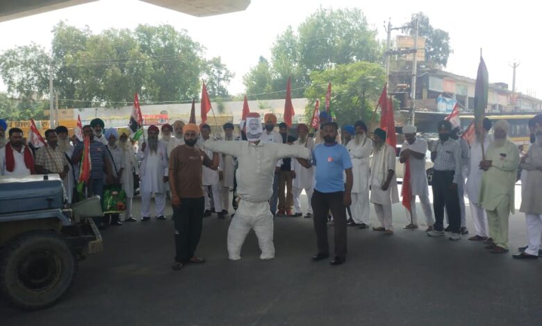 ਬਾਬਾ ਬਕਾਲਾ ਸਾਹਿਬ 03 ਅਕਤੂਬਰ (ਸੁਖਵਿੰਦਰ ਬਾਵਾ) : 3 ਅਕਤੂਬਰ 2021 ਨੂੰ ਉੱਤਰ ਪ੍ਰਦੇਸ਼ ਦੇ ਲਖੀਮਪੁਰ ਖੀਰੀ ਨੇੜਲੇ ਕਸਬੇ ਤਿਕੁੰਨੀਆ ਵਿਖੇ ਕੇਂਦਰੀ ਵਜੀਰ ਅਜੇ ਮਿਸ਼ਰਾ ਟੈਣੀ ਦੇ ਭਤੀਜੇ ਅਸ਼ੀਸ਼ ਮਿਸ਼ਰਾ ਵੱਲੋਂ ਜੀਪ ਹੇਠ ਦਰੜ ਸ਼ਹੀਦ ਕੀਤੇ ਕਿਸਾਨਾਂ ਅਤੇ ਕਵਰੇਜ ਕਰ ਰਹੇ ਸ਼ਹੀਦ ਪੱਤਰਕਾਰ ਦੀ ਯਾਦ ਵਿੱਚ ਸੰਯੁਕਤ ਕਿਸਾਨ ਮੋਰਚੇ ਦੇ ਸੱਦੇ ਤੇ ਅੱਜ ਸੈਂਕੜੇ ਕਾਰਕੁੰਨਾਂ ਵੱਲੋਂ ਕਸਬਾ ਰਈਆ ਦੇ ਬਜਾਰਾਂ ਵਿੱਚ ਮਾਰਚ ਕਰਨ ਉਪਰੰਤ ਕੇਂਦਰ ਸਰਕਾਰ ਦਾ ਪੁਤਲਾ ਫੂਕਿਆ ਜਿਸਦੀ ਅਗਵਾਈ ਜਮਹੂਰੀ ਕਿਸਾਨ ਸਭਾ ਦੇ ਆਗੂ ਸਵਿੰਦਰ ਸਿੰਘ ਖਹਿਰਾ ਅਤੇ ਕਿਰਤੀ ਕਿਸਾਨ ਯੂਨੀਅਨ ਪੰਜਾਬ ਦੇ ਆਗੂ ਕੁਲਵੰਤ ਸਿੰਘ ਛੱਜਲਵੱਡੀ ਅਤੇ ਦਿਹਾਤੀ ਮਜਦੂਰ ਸਭਾ ਦੇ ਸੂਬਾਈ ਆਗੂ ਅਮਰੀਕ ਸਿੰਘ ਦਾਊਦ ਨੇ ਕੀਤੀ।