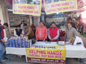 ਮੌੜ ਮੰਡੀ, 14 ਜਨਵਰੀ (ਸੁਰੇਸ਼ ਰਹੇਜਾ) : ਹੈਲਪਿੰਗ ਹੈਂਡਜ਼ ਚੈਰੀਟੇਬਲ ਟਰੱਸਟ ਰਾਜ ਮਾਘੀ ਦੇ ਸਹਿਯੋਗ ਨਾਲ ਮੌੜ ਦੇ ਵਰਕਰਾਂ ਨੇ ਪੁਰਾਣੀ ਅਨਾਜ ਮੰਡੀ ਮੌੜ ਮੰਡੀ ਵਿਖੇ ਸਮਾਜ ਸੇਵਾ ਅਤੇ ਲੋਕ ਹਿੱਤ ਲਈ ਕੈਂਪ ਲਗਾਇਆ ਅਤੇ ਲੋਕਾਂ ਨੂੰ ਗਰੀਬ ਪਰਿਵਾਰਾਂ ਦੀ ਸੇਵਾ ਕਰਨ ਦੀ ਅਪੀਲ ਕੀਤੀ।