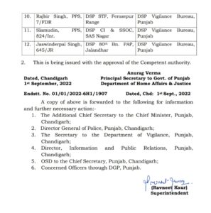 चंडीगढ़ 1 सितंबर (ब्यूरो) : पंजाब सरकार ने आज विजिलेंस ब्यूरो में कई तबादले किए हैं। जालंधर में विजिलेंस ब्यूरो के नए SSP राजेश्वर सिंह सिद्धू हुए तैनात।