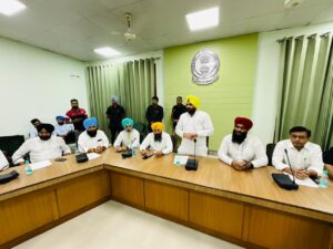 ਬਚਤ ਭਵਨ ਵਿਖੇ ਵਿਧਾਇਕਾਂ ਅਤੇ ਹੋਰ ਅਹੁਦੇਦਾਰਾਂ ਨਾਲ ਮੀਟਿੰਗ ਕਰਦੇ ਹੋਏ ਕੈਬਨਿਟ ਮੰਤਰੀ ਸ ਹਰਭਜਨ ਸਿੰਘ ਈ ਟੀ ਓ।