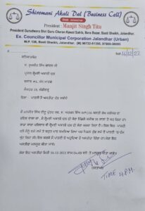 ਜਲੰਧਰ, 16 ਦਸੰਬਰ (ਕਬੀਰ ਸੌਂਧੀ) : ਯੂਥ ਅਕਾਲੀ ਦਲ ਅਤੇ ਵਪਾਰ ਸੈਲ ਦੇ ਸਾਬਕਾ ਪ੍ਰਧਾਨ ਅਤੇ ਸਾਬਕਾ ਕੌਂਸਲਰ ਸ. ਮਨਜੀਤ ਸਿੰਘ ਟੀਟੂ ਵਲੋਂ ਅਕਾਲੀ ਦਲ ਦੇ ਸਾਰੇ ਅਹੁਦਿਆ ਤੋਂ ਅਸਤੀਫਾ ਦੇ ਦਿੱਤਾ ਹੈ। ਮਨਜੀਤ ਸਿੰਘ ਟੀਟੂ ਵਲੋਂ ਪੱਤਰਕਾਰਾਂ ਨਾਲ ਗੱਲਬਾਤ ਕਰਦਿਆਂ ਦੱਸਿਆ ਗਿਆ ਕਿ ਉਨ੍ਹਾਂ ਨੇਂ ਪਾਰਟੀ ਪ੍ਰਧਾਨ ਸ. ਸੁਖਬੀਰ ਸਿੰਘ ਬਾਦਲ ਅਤੇ ਜਲੰਧਰ ਅਕਾਲੀ ਦਲ ਦੇ ਪ੍ਰਧਾਨ ਸ.ਕੁਲਵੰਤ ਸਿੰਘ ਮੰਨਣ ਨੂੰ ਆਪਣਾ ਅਸਤੀਫਾ ਵਟਸਐਪ ਅਤੇ ਮੇਲ ਰਾਹੀਂ ਭੇਜ ਦਿੱਤਾ ਹੈ।